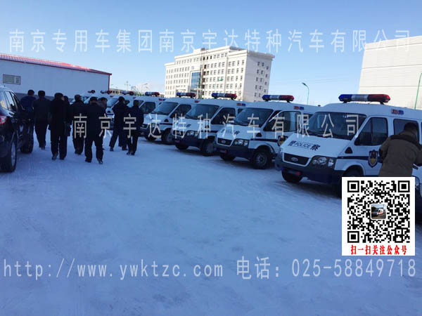 内蒙锡林郭勒盟中级人民法院在我司订购的10台江铃全顺长轴囚车顺利送达交付。