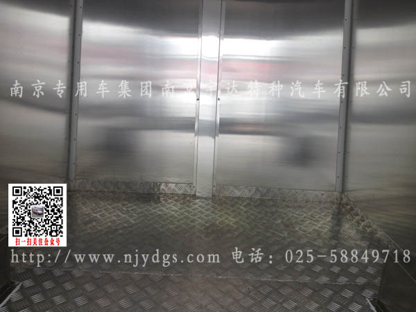 保温厢体为全密封长方型车厢,既具有良好的隔热、保温性能,满足物品,低温运输的保温要求。保温厢板结构形式为“三明治”大板粘接,采用的是国际通主流工艺,即采用聚氨脂硬质泡沫材料和内外蒙皮粘接而成,经过加温加压成型。厢体内外表面平整度高,采用圆弧型外包铝合金型材,牢固美观。冷藏车车厢底板为铝合金花纹板。后门采用多层迷宫式胶条密封,