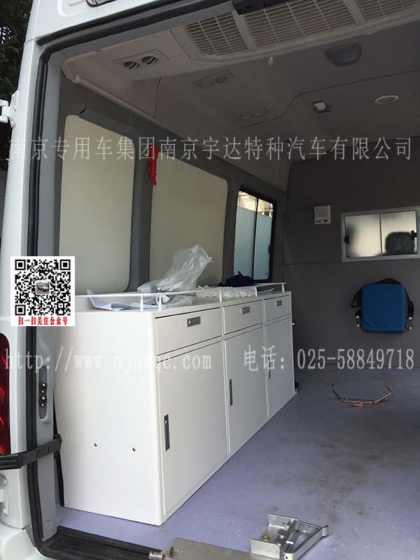 8、医疗舱左侧医疗柜(铁质喷塑)并配有220V电源插座;