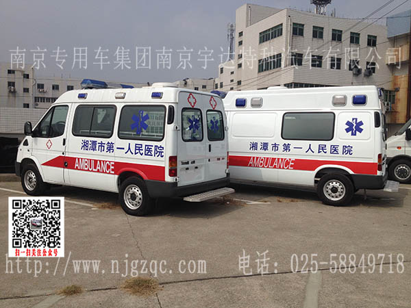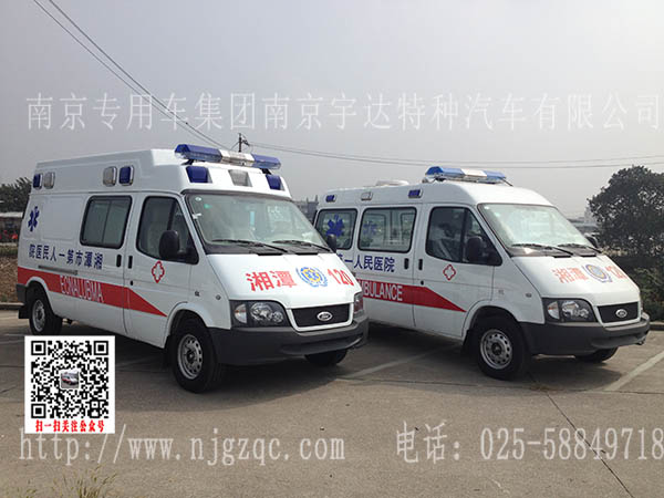 湘潭市第一人民医院在我司订购的江宁全顺长轴以及短轴俩台救护车已顺利送达。