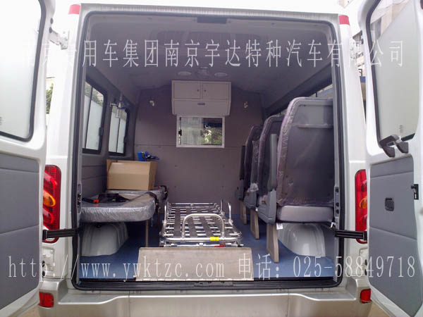 警报系统车顶凸台的长条警灯、四周爆闪灯、救护的外观、中隔断、医用吊柜、10升的氧
