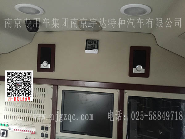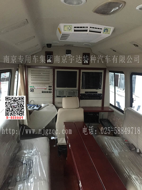 选装显示屏,顶置空调整车高度为2870mm(中顶),3120mm(高顶),选装顶部照明灯及监视器,工作平台整车高度为2970mm(中顶),3220mm(高顶)。